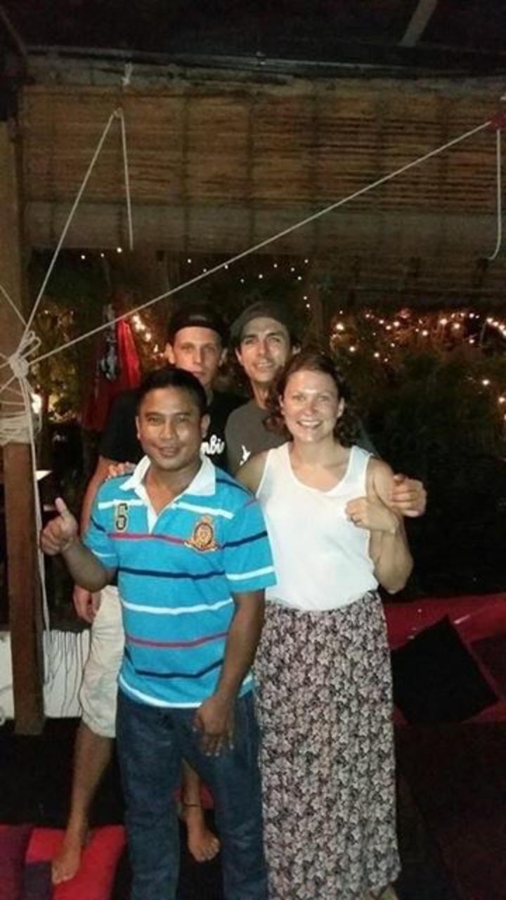Last night together in Phnom Penh - Keo, Freddie (looking very smiley), Alex and Kim