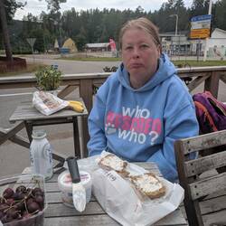 Den første dag var det umuligt for os at få padlet flåten ind til land for at finde et sted at slå lejr. Nu er har vi lært elvens strøm at kende, og ved ankomst til Klarälven camping lykkedesLäs mer