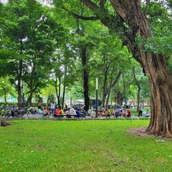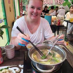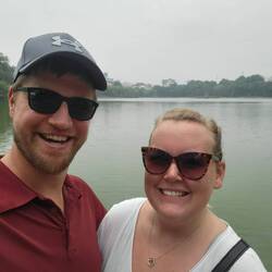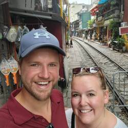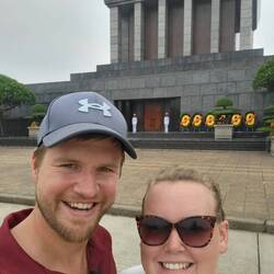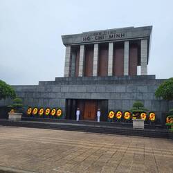 Wir machten uns aber möglichst wenig Stress und schlenderten entspannt durch die Gassen über den Don Xuan Market zum Hoan Kiem See, einen kleinen See in der Altstadt, an der St . Joseph Katedrale vorbei bis hin zur Train Street. Nach einer kleinen Stärkung bei einem vietnamesischen Mittagessen machten wir uns auf zum Ho Chi Min Mausoleum, die Grabstätte des berühmten Unabhängigkeitskämpfers und ehemaligen Präsidenten von Vietnam. Wir konnten dann einen Blick ins Museum werfen und sahen das Mausoleum sowie den ehemaligen Palast von außen. Danach ließen wir uns von einem zufällig herbeifahrenden Fahrrad-Tuktuk mitnehmen und zurück ins Old Quarter fahren.