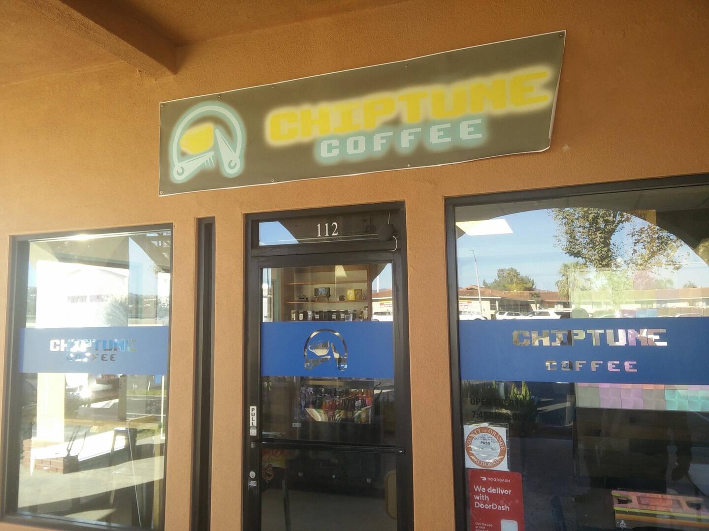 We went to In-N-Out Burger and noticed a sign saying "Chiptune Coffee" at the place, so we walked around until we found it.