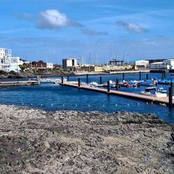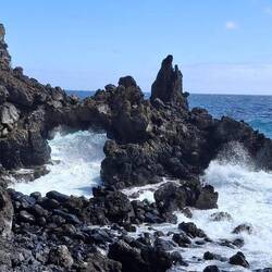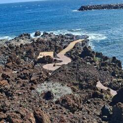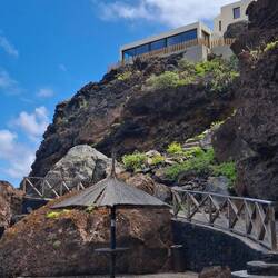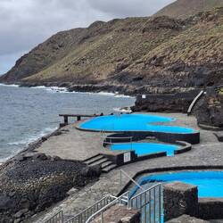 Dann ging es weiter zur Nordost-Küste der Insel, endlich in die Wärme. Ditekt an der Küste und neben dem Flughafen liegt der kleine und beschauliche Ort "Tamaduste". Bekannt ist er vor allem durch seine attraktiv gestaltete Badebucht, die das ganze Jahr hindurch zur Abkühlung in das kristallklare Wasser einlädt. Über Plattformen und hübsche Brücken lässt sich einmal die gesamte Bucht bei einem Spaziergang umrunden. Am südlichen Ende liegt die Cueva de los Barcos (Höhle der Boote), in der – wie der Name schon sagt – Boote gelagert werden. Im Sommer findet hier das eine oder andere Konzert statt.