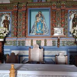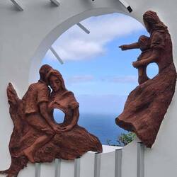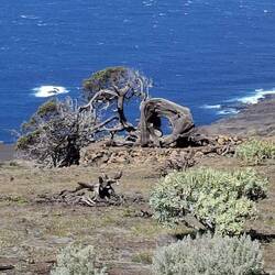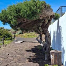 Danach ging es aufwärts zur "Ermita de la Señora de los Reyes", die Schutzpatronin der Insel. Hier wehte der Wind so stark, daß wir uns nur ganz kurz dort aufgehalten haben. Wir vermuten, dass es in dieser Gegend ständig starken Wind gibt, denn die Büsche und Bäume sind alle in Richtung Meer ausgerichtet.