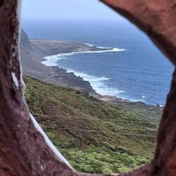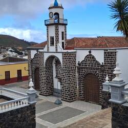 Danach zur offiziellen Insel-Hauptstadt "Valverde". Der Himmel dort grau, es ist kaum was los, und die paar Menschen, die man auf der Straße trifft, tragen dicke Steppjacken und teils Kapuzen. Valverde liegt auf etwa 600 Hm. Valverde mit seinen steilen Gassen sehr beschaulich geblieben. Die hübsche Plaza Principal bildet das Ortszentrum. Dort befindet sich auch das im altkanarischen Stil gebaute Rathaus. Über Treppen gelangt man hinab zur majestätischen Festungskirche Iglesia de la Concepción. Mit dunklen Vulkansteinen verziert und einem blau-weiß gestreiften kleinen Turmdach ist sie in jedem Fall ein toller Anblick. Ende des 18. Jahrhunderts wurde sie auf den Resten eines Vorgängerbaus aus dem Jahre 1544 errichtet.