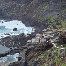 Wir sind im Ort "Frontera" auf etwa 250 Hm. Die große Bucht heißt "El Golfo". Frontera ist die heimliche Hauptstadt der Insel, größer als Valverde.