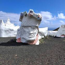 Der "Mirador de la Pena" ist ein kleines Schmuckstück. Der von "Cesar Manrique" entworfene Aussichtspunkt ist gleichzeitig ein kleiner Park, der wunderschön angelegt wurde. Das Café bzw. Restaurant macht einen gediegenen Eindruck. Aber heute auch hier: Wind, Wolken, Kälte 😡