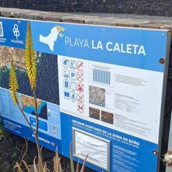 Weiter ging es nach "Pozo de las Calosas". Am Parkplatz gibt es ein "Kiosco", also so etwas wie eine Imbiss-Bude und ein Kinderspielplatz. Der Abstieg zum Strand und zum Naturschwimmbecken ist auf längere Dauer gesperrt: die unten am Strand befindlichen Bretterbuden, die als Wochenend-Behausungen dienen, sind durch herabfallende Gesteinsbrocken gefährdet.