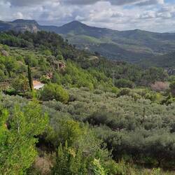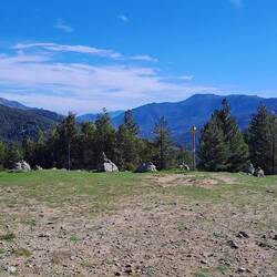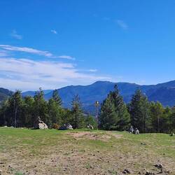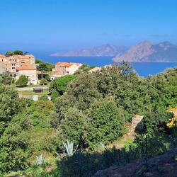 Es ging ca. 50 km nördlich nach Porticcio. Hier stehen wir 2 km oberhalb der Stadt alleine auf einem privatenLeia mais
