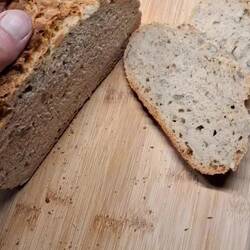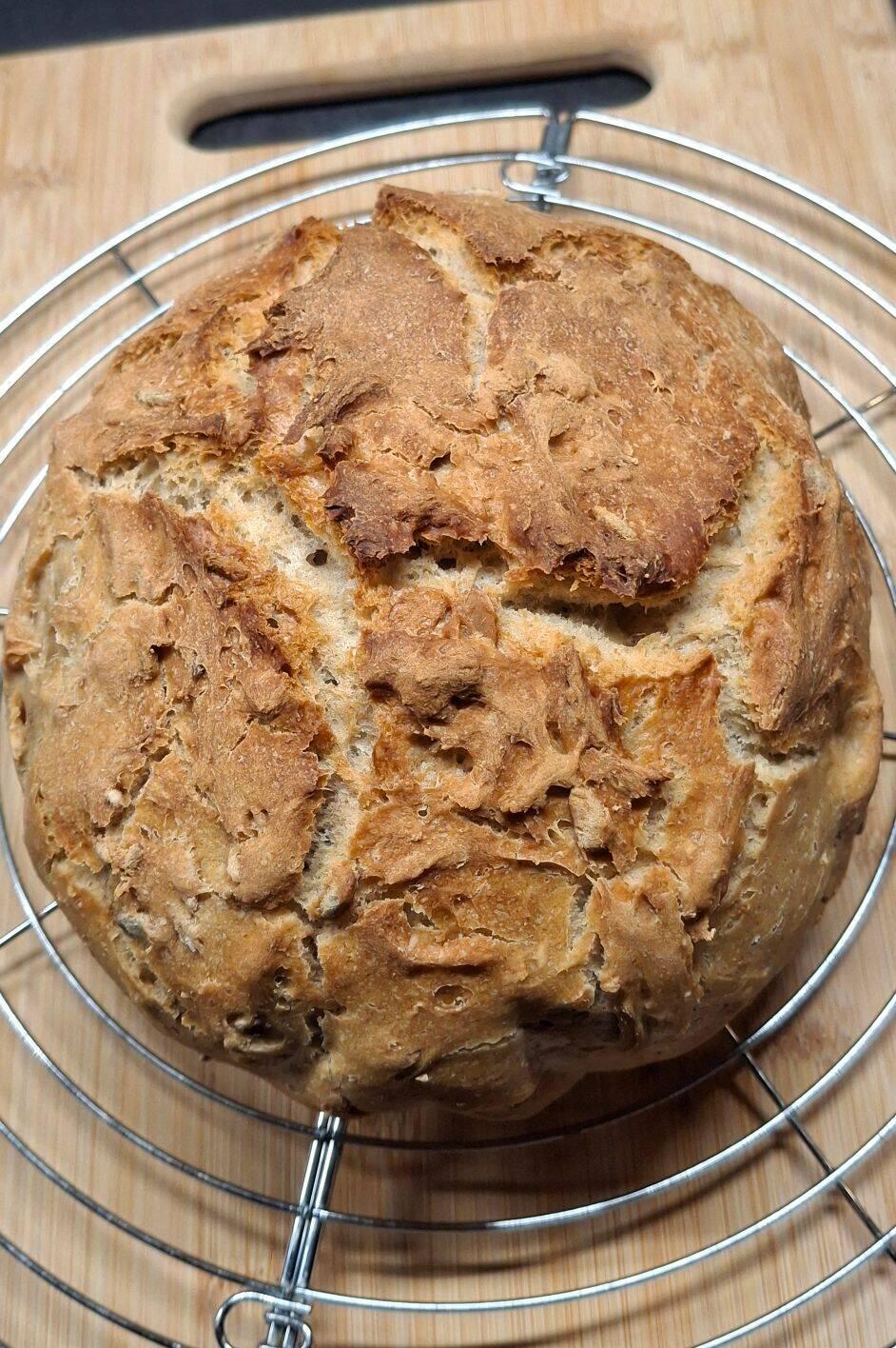 Heute ein Bauernbrot mit Weizen- und Roggenvollkornmehl. Dazu eine Körnermischung. Das Brot habe ich im Topf gebacken...