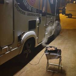 Nach einem leckeren 😋 essen im Nachbar Campingplatz. Sind die drei hübschen (liebchen) im womo.