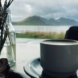 Haben uns heute auf den Weg nach Henningsvær gemacht. Etwas über eine Stunde Autofahrt dorthin. Hier sind wir etwas rumgeschlendert, haben in der Trevarefabrikken einen Cappuccino und KakaoLeer más