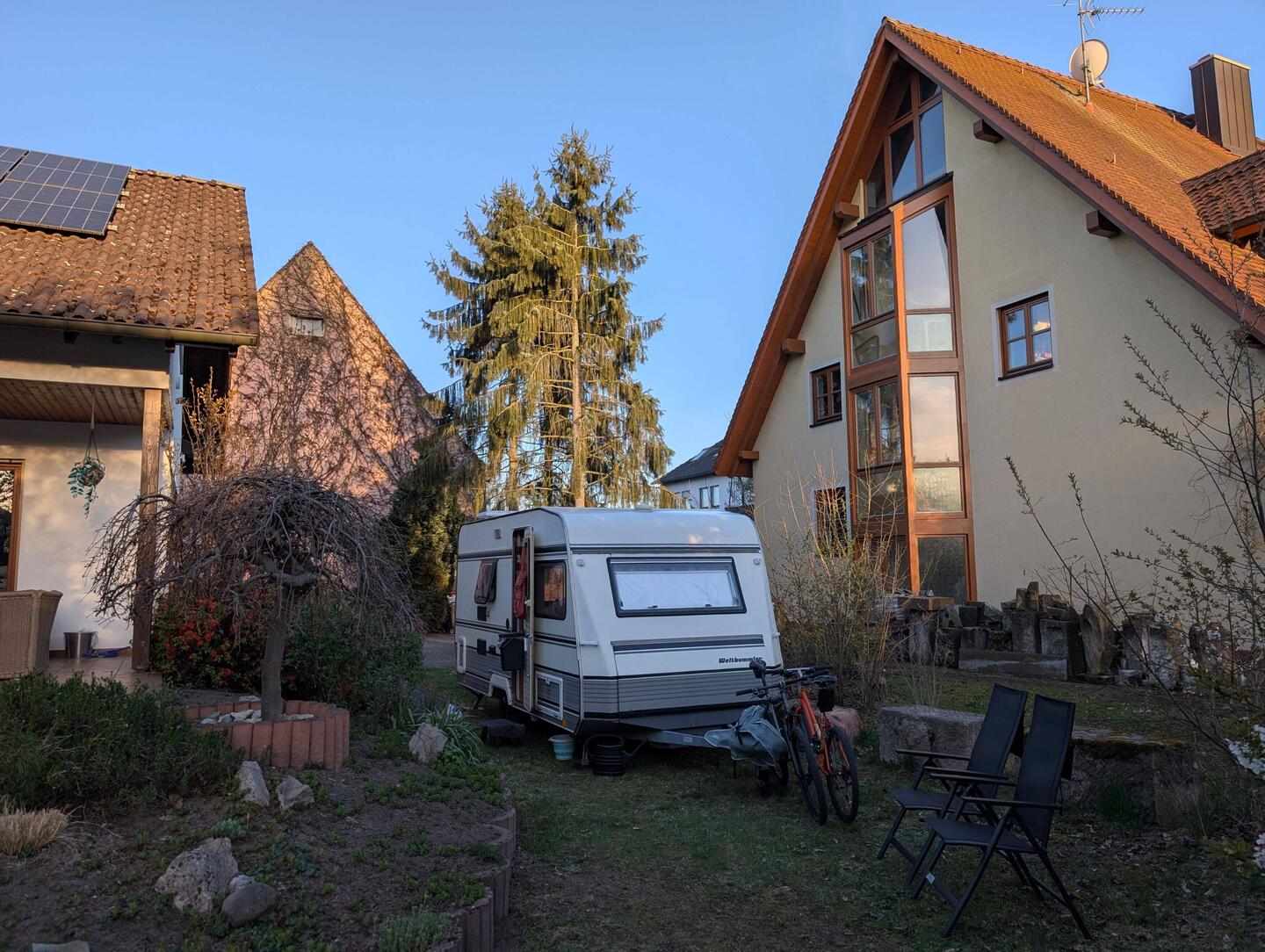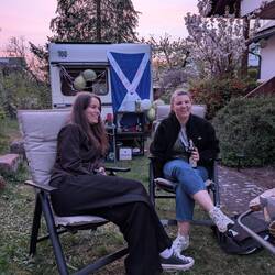 Unsere lieben Freunde Dani und Verena begrüßten uns herzlich auf Ihrem tollen Grundstück im Nürnberger Norden. Mitten in der City und dennoch super ruhig mit Vogelbeobachtung, Kirschblüte,Lue lisää