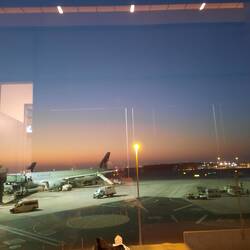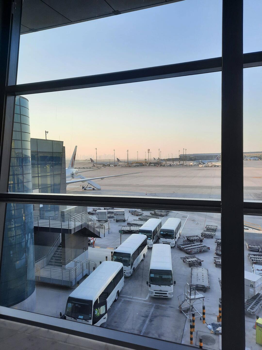 Die erste Strecke haben wir geschafft. Nun sitzen wir in Doha und warten auf unseren Anschlussflug.