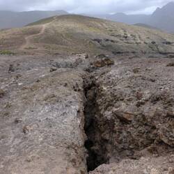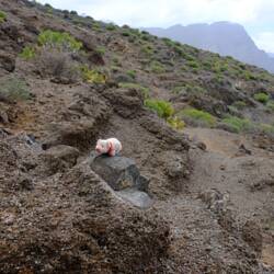 Ich gehe an den Meeresschwimmbecken, an der heute (im Gegensatz zu gestern) die rote Fahne weht, vorbei. Der Weg führt mich weiter nach Norden oberhalb vom Playa La Caleta, durch den Barranquillo Caleta, an der Cueva del Muro vorbei und schließlich bis zur Punta Gorda bzw. dem „Möwenfelsen“.