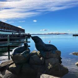 Nach meiner schweißtreibenden Wanderung gestern bin ich nach einem Tankstopp - den günstigen Sprit ($ 1,82 = 1,10 €) muss ich nutzen - auf direktem Weg nach Hobart gefahren.