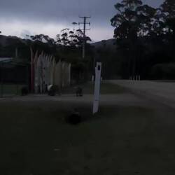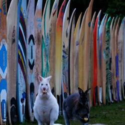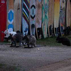 Auf der Straße sind ein paar Kängurus unterwegs, weswegen die Grundstücke wohl alle umzäunt sind.