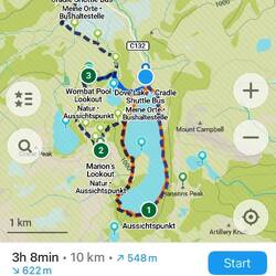 Wombat Pool (Track) -> Lake Lilla (Track) -> Ronny Creek