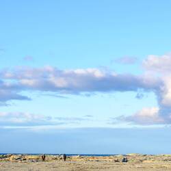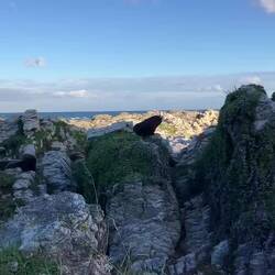 Noch weit vor der eigentlichen Kolonie liegt eine große Robbe auf den weißen Steinen und zieht immer mehr fotografierende Touristen an. ☺️