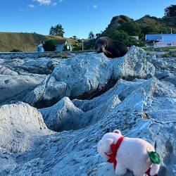 Nach einer sehr erholsamen Nacht (endlich - nach 5 eher schlechten), einem gemütlichen Start in den Tag, immer wieder Regen und zeitweise 9 Grad gehe ich am Nachmittag warm angezogen vor die Türe, um der Robbenkolonie auf der Kaikoura Peninsula einen Besuch abzustatten.