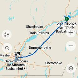 Der Bus startet um 11:30 h und kommt nach etwa 3 Stunden in Montréal an.