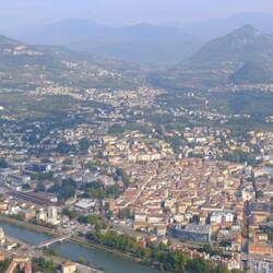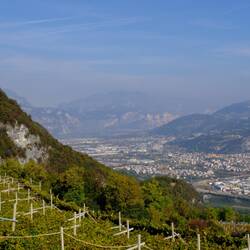 Am Montag Mittag komme ich - klar - bei strahlendem Sonnenschein über Franzensfeste und Bozen in Trient an. Da der Holidaypass aus Bruneck noch gültig ist (für alle Regionalzüge in Südtirol),Les mer