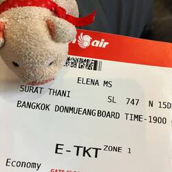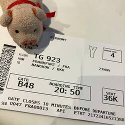 Mit knapp einer Stunde Verspätung starten wir nach Thailand 🇹🇭, wo wir nach etwa 11 Stunden im sonnig warmen Bangkok landen.