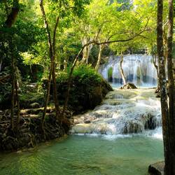 Der Wecker geht schon um 6:30 h, da ich eine Stunde später abholbereit sein muss. Die Fahrt zum Erawan Nationalpark dauert etwa eine Stunde.