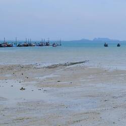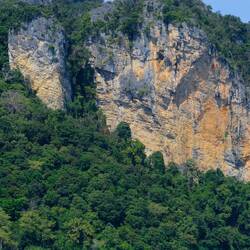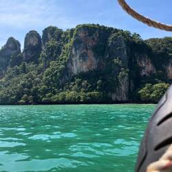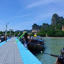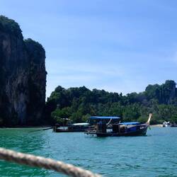 Während sich am Strand Phra Nang noch sehr viele Leute sowohl im Wasser als auch an Land aufhalten, werden es immer weniger, je weiter ich gehe… und ein schattiges Plätzchen finde.
