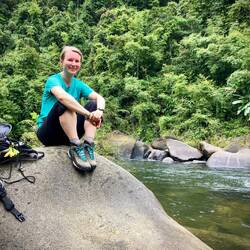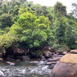 Nach knapp 2 Stunden komme ich am Wasserfall an, der sich über 2 Level erstreckt. Manche baden hier… warum nicht - man kommt ja eh schon nassRead more