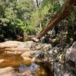 Statt nochmal in den Freycinet NP zu fahren und den Mt. Amos zu besteigen, fahre ich in den näher gelegenen Douglas Apsley Nationalpark und erwandere hier die Apsley Waterhole & Gorge.