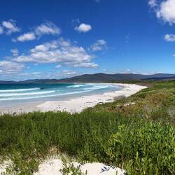 Nach meinem Aufstieg auf den Mt. Mangana mit eingeschränkter Sicht auf Cape Bruny fahre ich zur Cloudy Bay, wo ich etwas mehr Zeit verbringe und sich nach und nach die Surfer bereit machen.