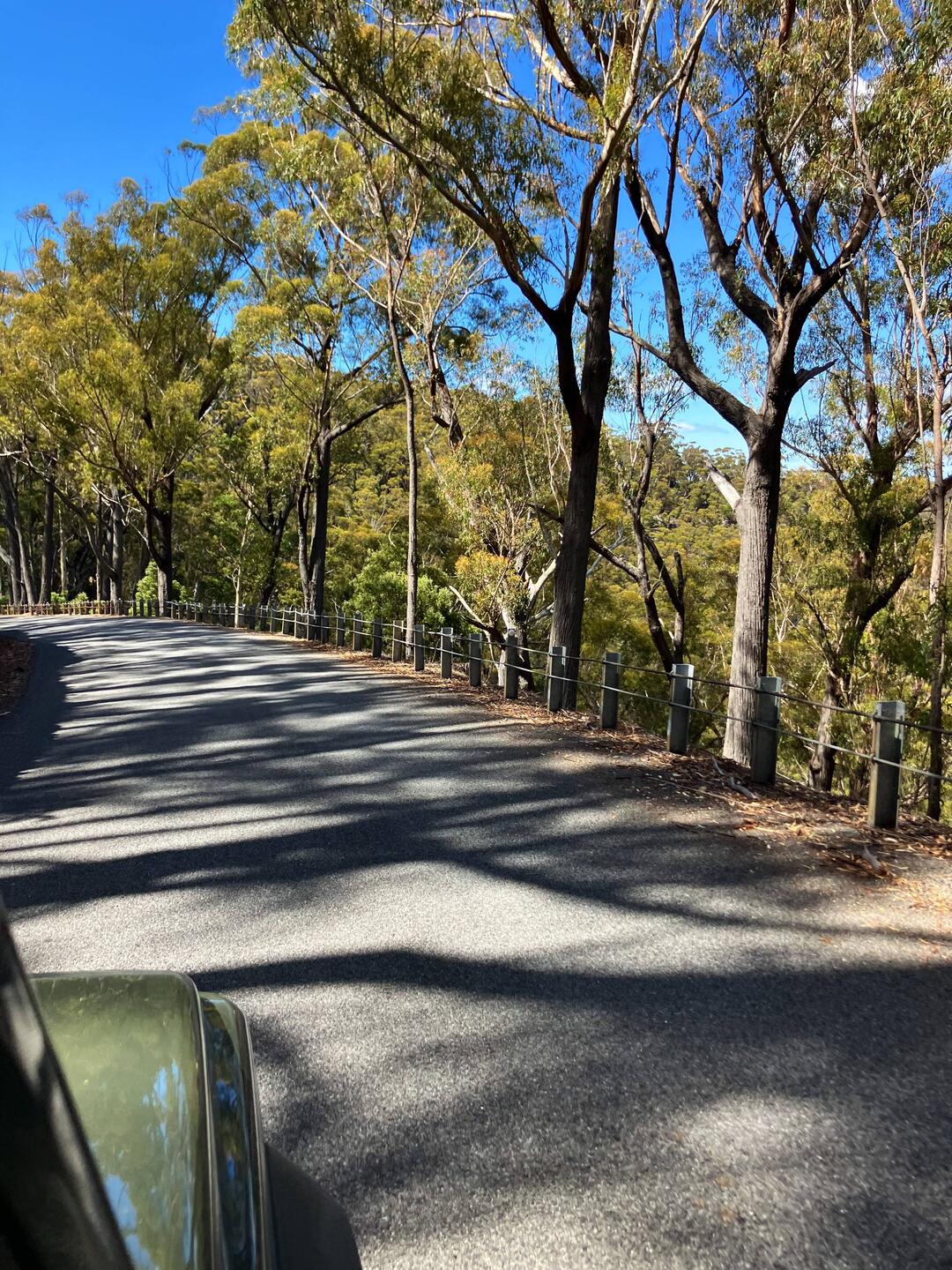 Auf der Straße sind ein paar Kängurus unterwegs, weswegen die Grundstücke wohl alle umzäunt sind.