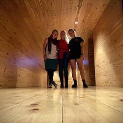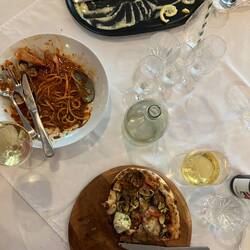 Gemeinsam mit Olivia lassen wir den Tag bei einem Abendessen mit Sekt und Piano ausklingen.