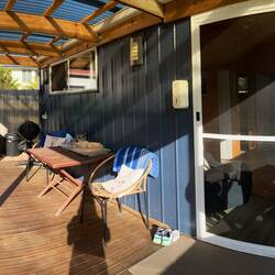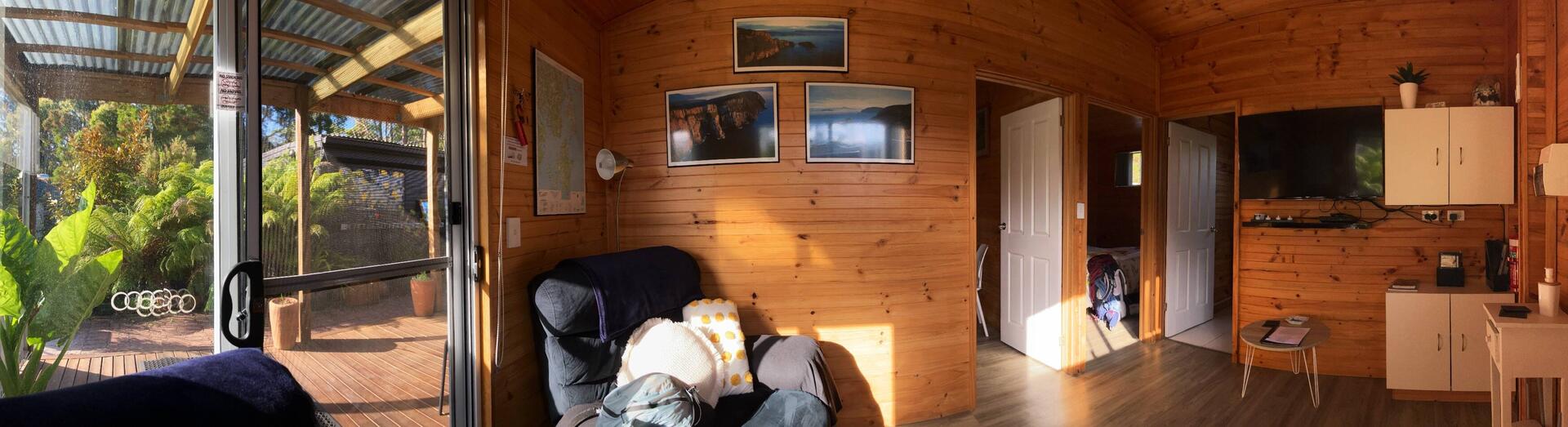Am späten Nachmittag komme ich in meiner gemütlichen Hütte mit Terrasse an. 😌