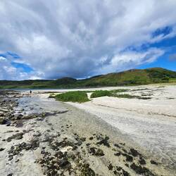 Ein mit Wolken verhangender Morgen, aber bald sollte die Sonne sich durchsetzen....dankeschön. Wir starten früh zur andern Inselseite, wo die Fähre rüber nach Iona, einem besonderenLeia mais