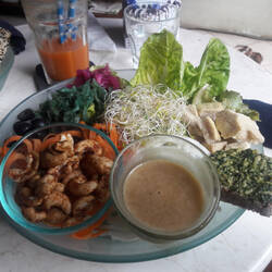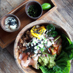 On our first evening in Ubud, we discovered a new vegan restaurant with a fabulous view over Pura Gunung Lebah. We had some delicious buddha bowls, wrapps and arrak Cocktails.