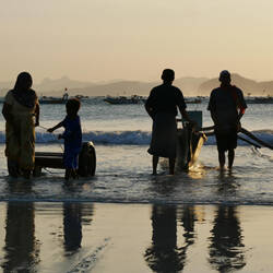 On the east side of the beach, especially in the evening, you can observe the local community, which is mainly dependent on fishing.