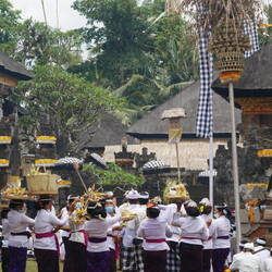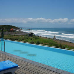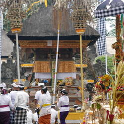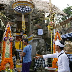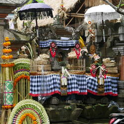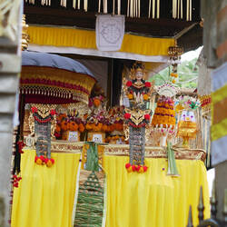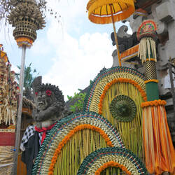 After one last breakfast at Ketut's Nyoman took me to Canggu. At my request we made a stop at a temple at which a big ceremony was taking place. The decorations were simply stunning!