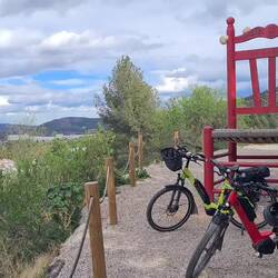 An tausenden Mandelbäumen vorbei ging es in die Hügel der Desert de les Palmes. Der Weg führte erst nach Cabanes. Dort und in 6 anderen Dörfern in der Nähe wurden 7 Riesenstühle aufgestellt die es zu finden gilt. 2 davon konnten wir besuchen. Für mehr sind die Strecken zu lang.