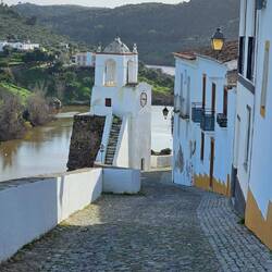 Nachdem das Wetter in den letzten Tagen sehr windig war und es auch immer wieder regnete stand heute ein Tagesausflug ins Alentejo auf dem Plan. Zumindest heute wurde uns Sonne versprochen und auch eingehalten. Der Weg führte uns nach Mértola, eine Kleinstadt mit ca.2500 Einwohnern. Die Hauptkirche der Stadt (Igreja Matriz) erhebt sich an der Stelle einer im 16. Jahrhundert zerstörten Moschee.