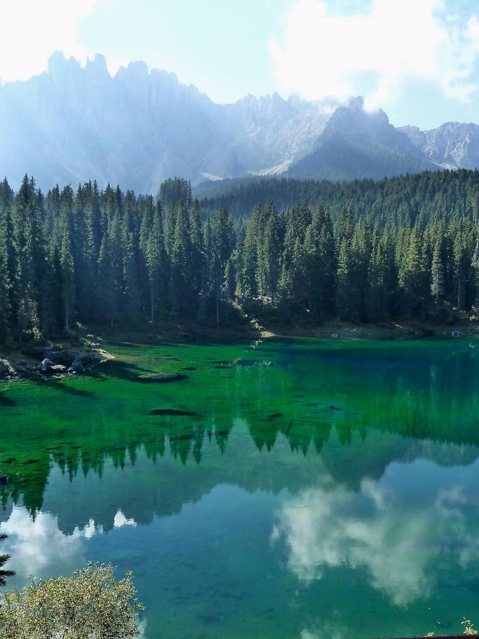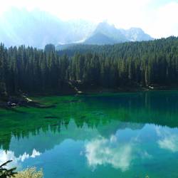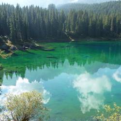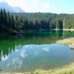 We make a diversion to Rainbow Lake. The water is clear and has multiple shades of blue and green in the midday sunshine. It's so still that reflections are easily seen.