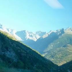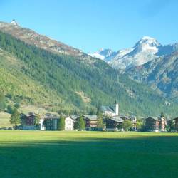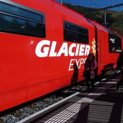 An early start walking to the train station at Tasch for the Glacier Express to Andermatt. We arrive around 10:45 after travelling through the steep mountain valleys, following the Rhone River. It's aLæs mere