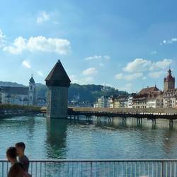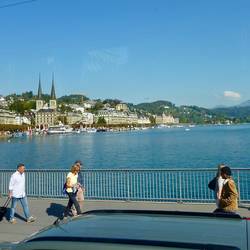Lucerne is our overnight stop. The lake is a beautiful blue in the sparkling sunshine. We see the wooden Chapel Bridge and the Swiss Guard Memorial (Lion Memorial).