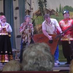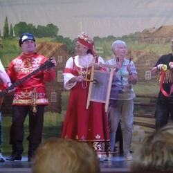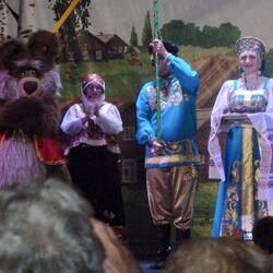 The performers chose people from the audience to participate in the dance and to play percussion instruments. All very entertaining and happy.