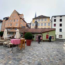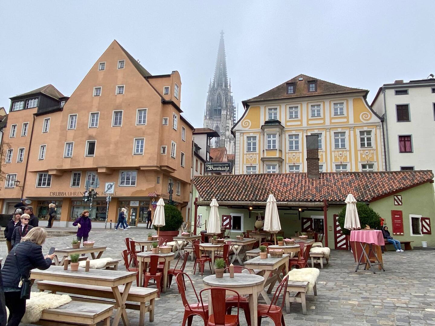 The Regensburg Sausage Kitchen is a major tourist destination, but locals eat there as well. It was originally built as the construction headquarters of the stone bridge and now lies adjacent to it.