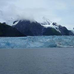 We travelled by boat up a narrow fjord to the head of Meares Glacier. All around us were small icebergs. While stationary about 500m off the head of the glacier we watched and then heard the crackingもっと詳しく