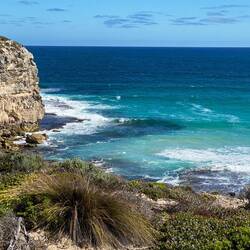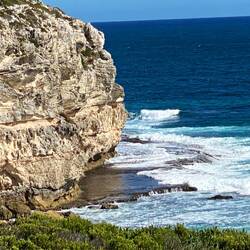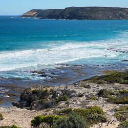 Thru the low lying coastal scrub and popped over a sand-dune and WOW! Situated on the south coast of KI, this is a popular surfing beach.