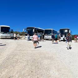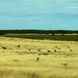 Corrugated gravel roads are far more prevalent than tarred roads. The land is mostly flat or slightly undulating. We see emus in the wild and the Coffin Bay brumbies which are also wild and areLæs mere
