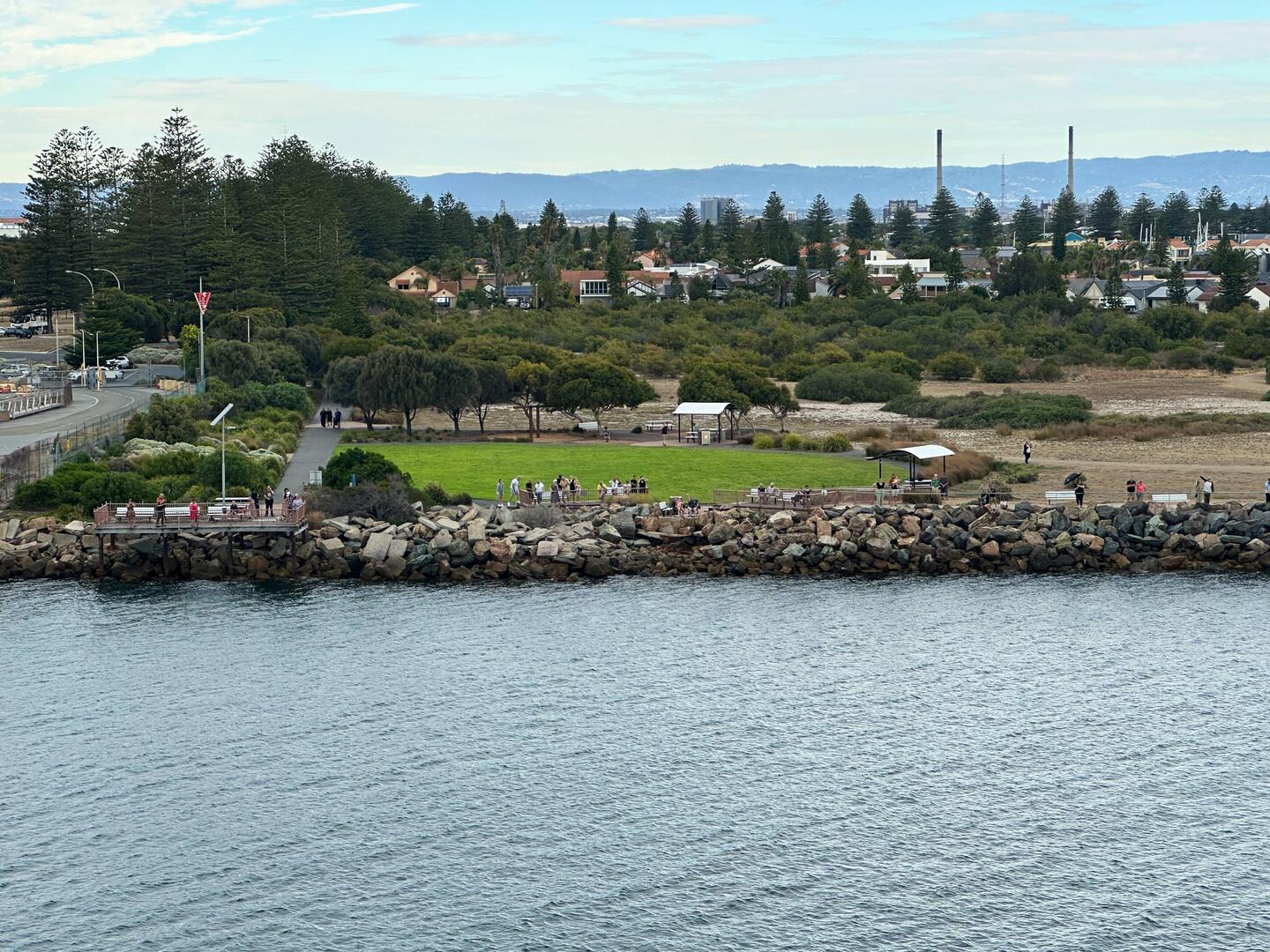 A day resting up so the pics are only from the ship. Yachts heading out for Saturday afternoon racing; the car terminal; North Haven Golf Course; the cruise terminal; and a local farewell.