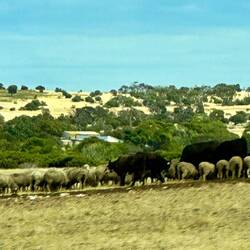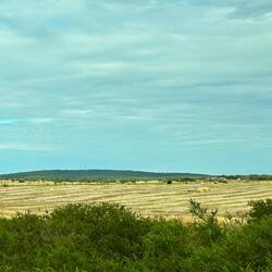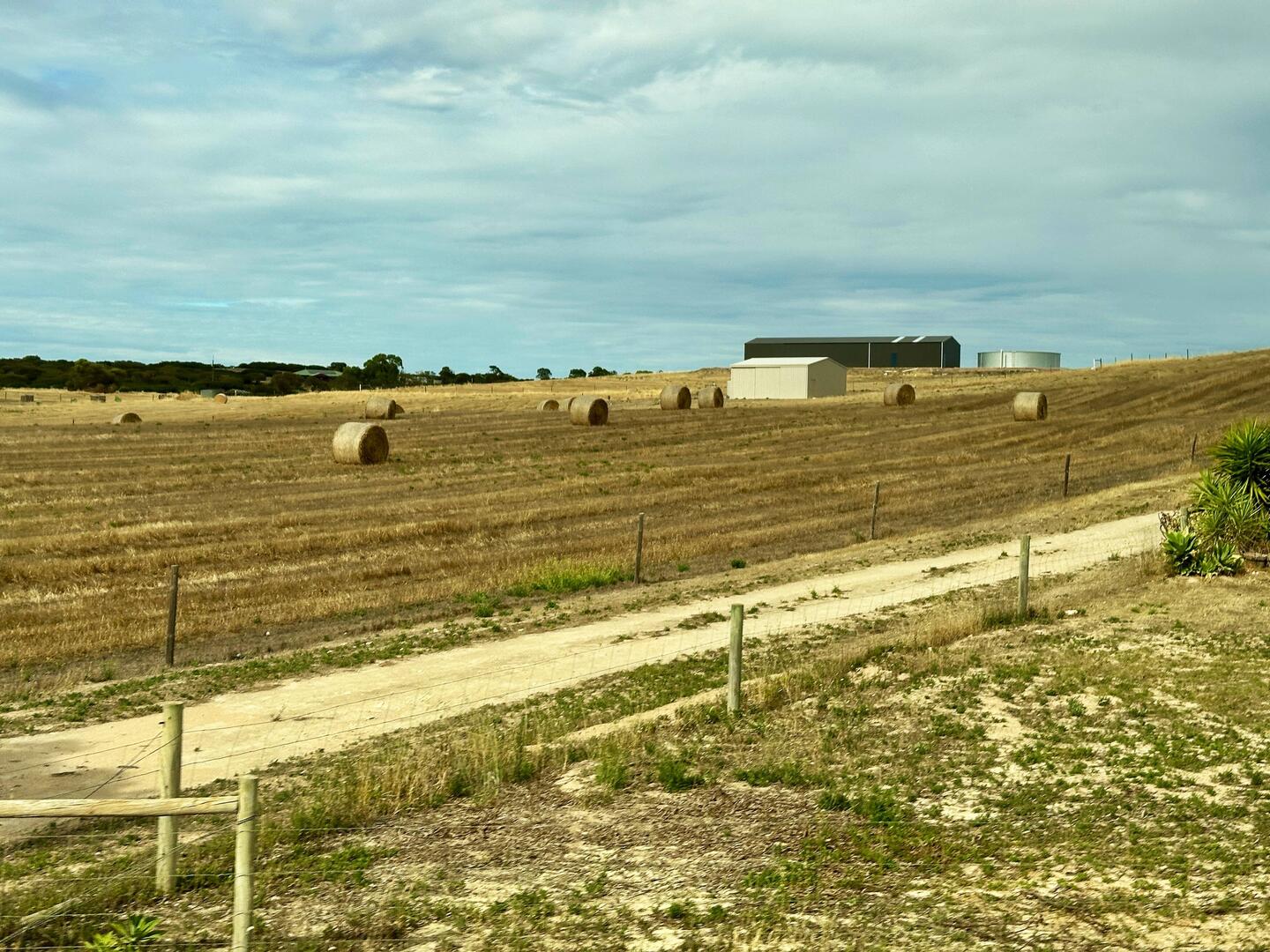 Agriculture on the Eyre Peninsula is mostly wheat, barley, canola, sheep and cattle. It has been a very dry year and many farmers are cutting the wheat for hay.