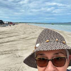We walked the promenade along the Port Melbourne waterfront. From here we can see the West Gate Bridge, People enjoying the wide sandy beach…..next the dog beach…. And the old pier….along theLæs mere